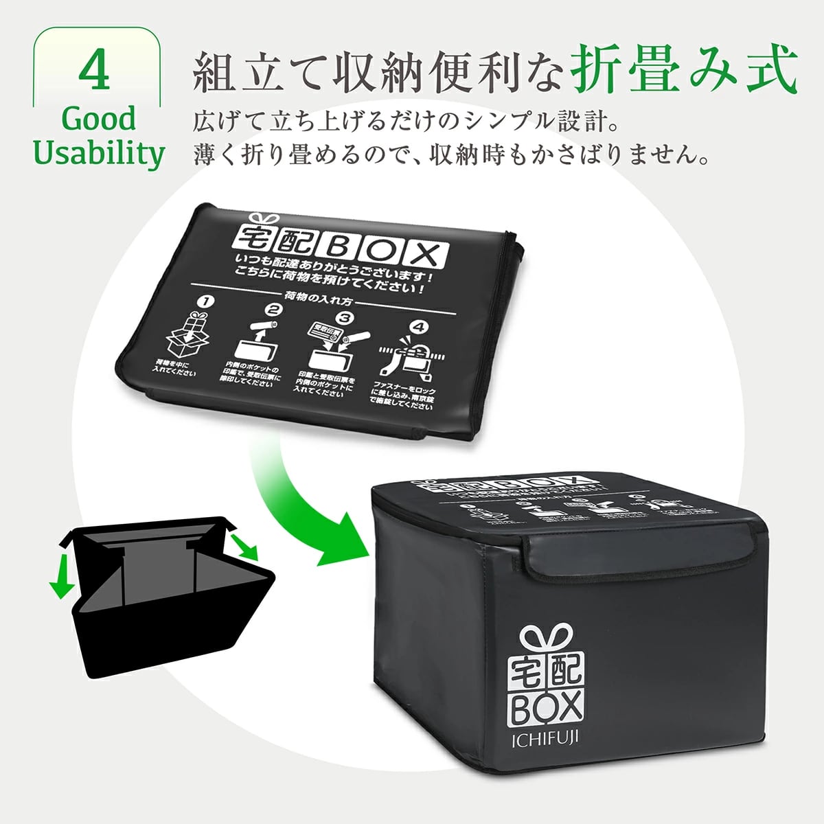 ⭐宅配ボックスで「再配達ゼロ!」へ!自立型宅配BOXとして、雨の日でも宅急便を濡らさず受け取ることができます。水に強い素材を使用しており、防水効果が期待できます。商品上面全体に使用方法が印字されており、初めてでも迷わずに使用が可能です。